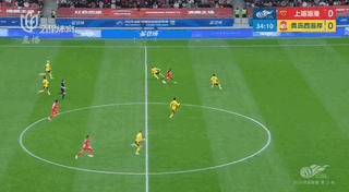 第34分钟,海港通过一次成功的角球防守获得反击机会!安佩姆得球推进,海港大举压上!蒯纪闻跟进得球再分给莱昂纳多,但后者随后的横传被对方回追的后卫及时解围,只能无功而返......